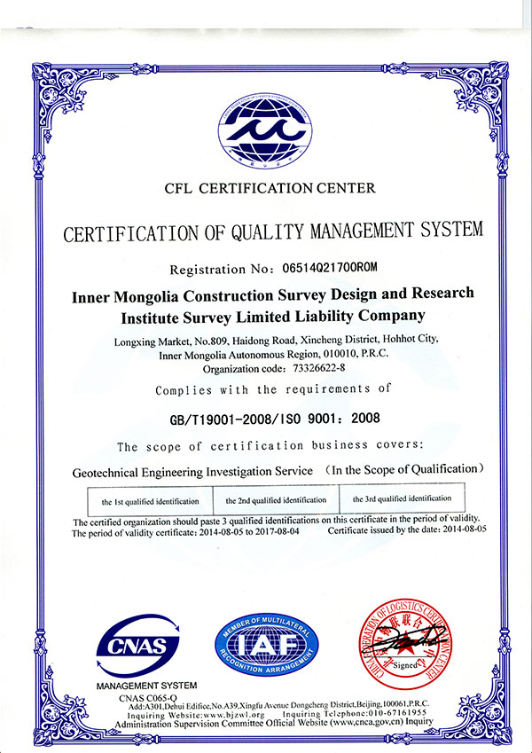 質量管理體系認證證書