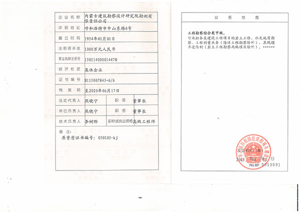 工程勘察類甲級證書